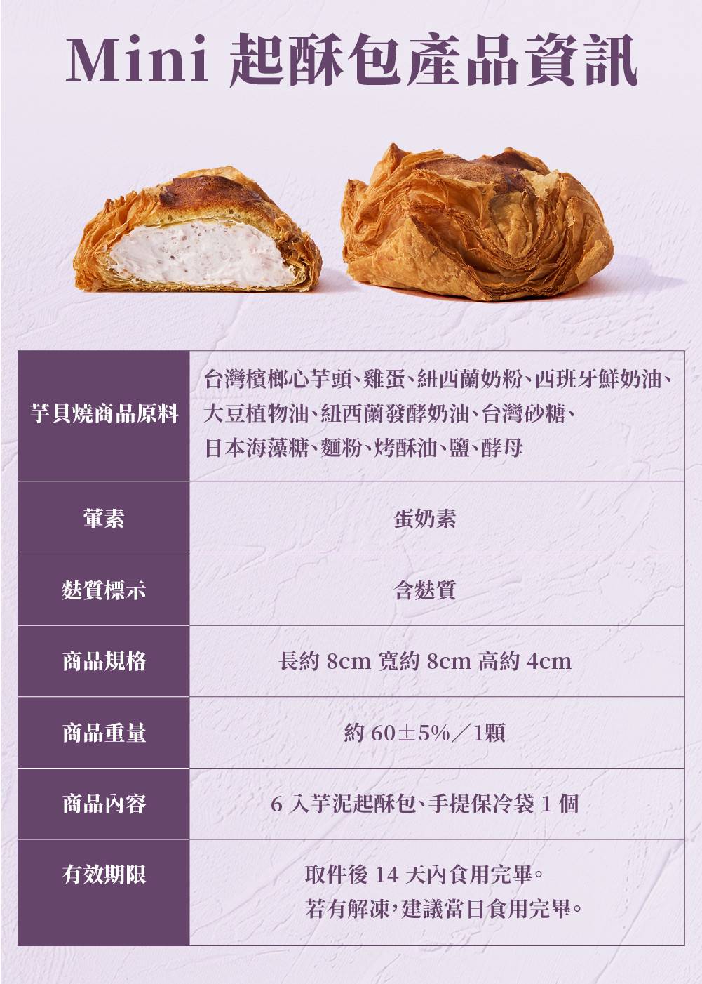 綜合mini冰心起酥包免運組-無禮盒(芋泥起酥包、巧克力起酥包、香草起酥包各6顆+保冷袋*1)