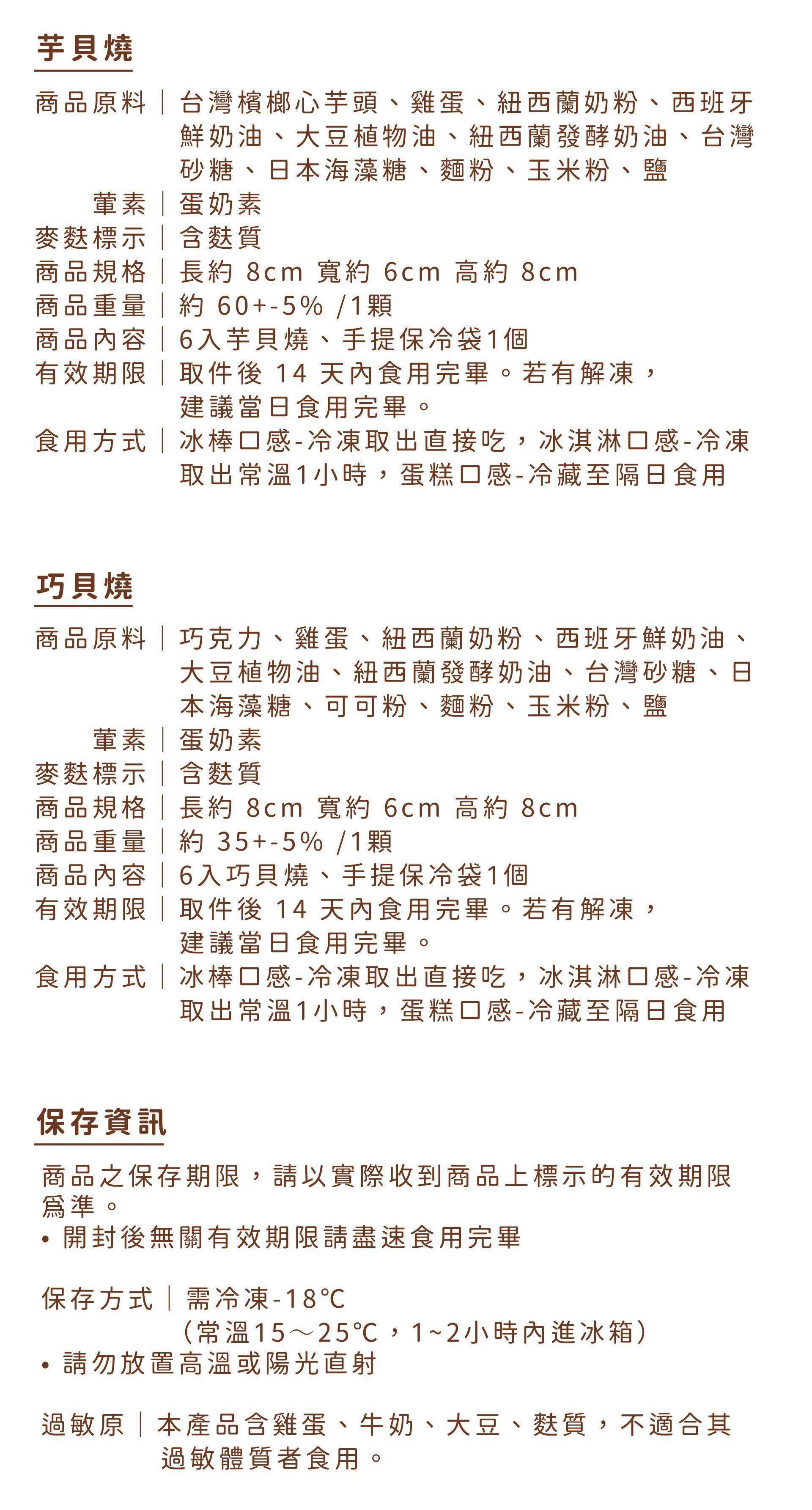 綜合雙拼免運組-無禮盒(芋貝燒、巧貝燒、粉紅貝貝、芋泥起酥包、香草起酥包、巧克力起酥包各3顆共18顆+保冷袋*1)
